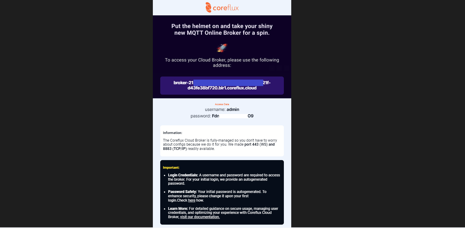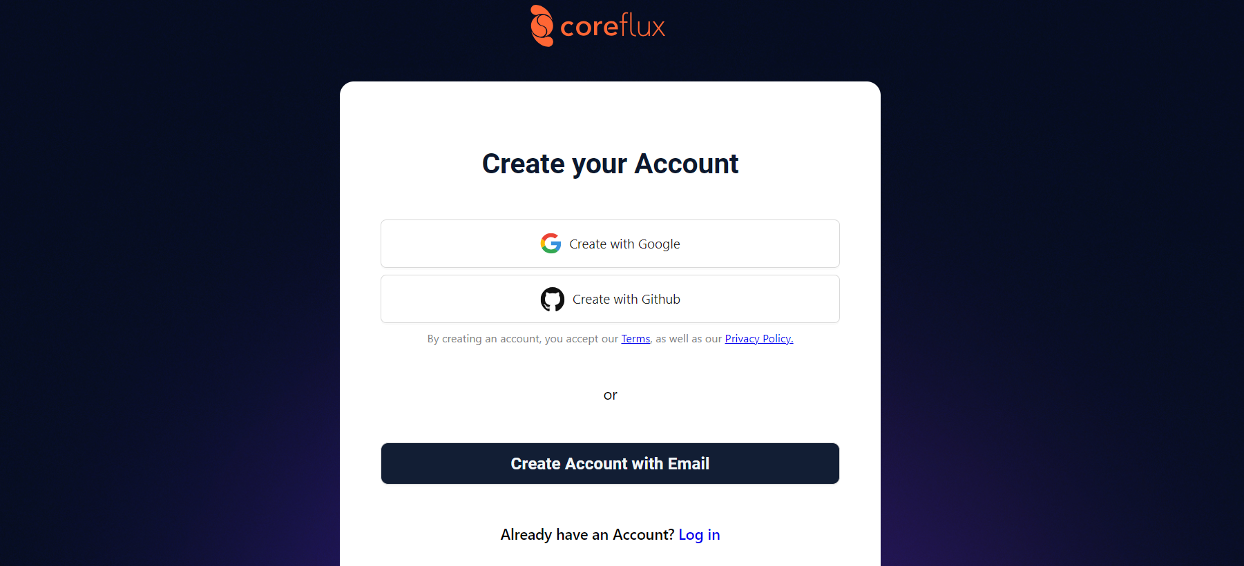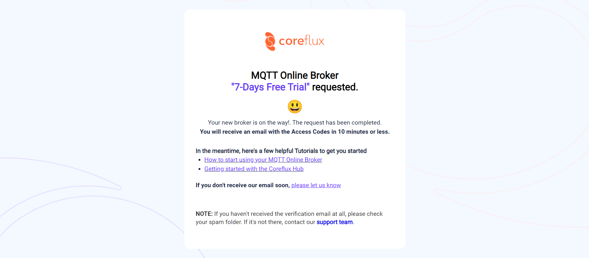 Start by signing up for a free Coreflux Cloud account, which includes a 7-day free trial of the Coreflux Online MQTT Broker. To create an account, visit Coreflux Cloud.