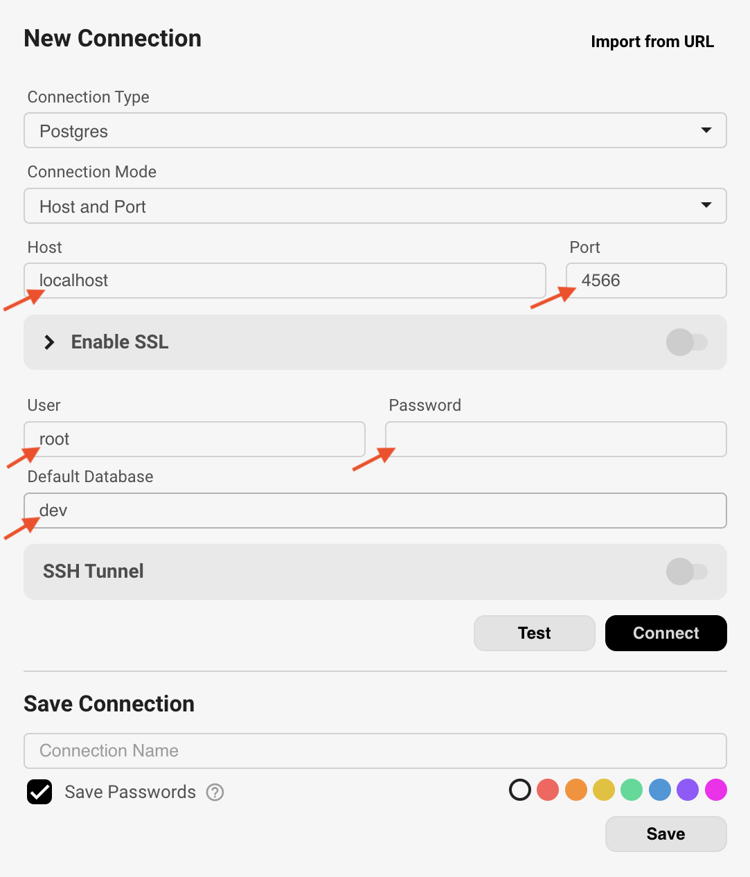 - Host: The hostname or IP address of the RisingWave database. The default Host is