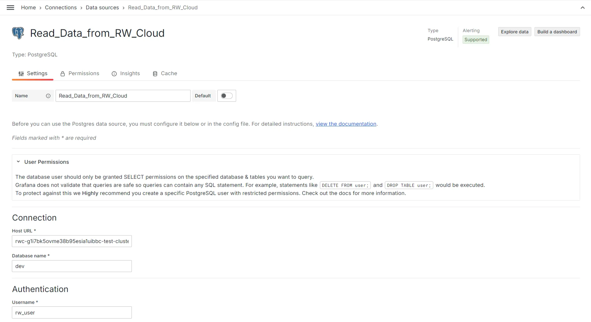 verify-fullfor secure connections. This will ensure that data transferred between Grafana and RisingWave is encrypted and verified.