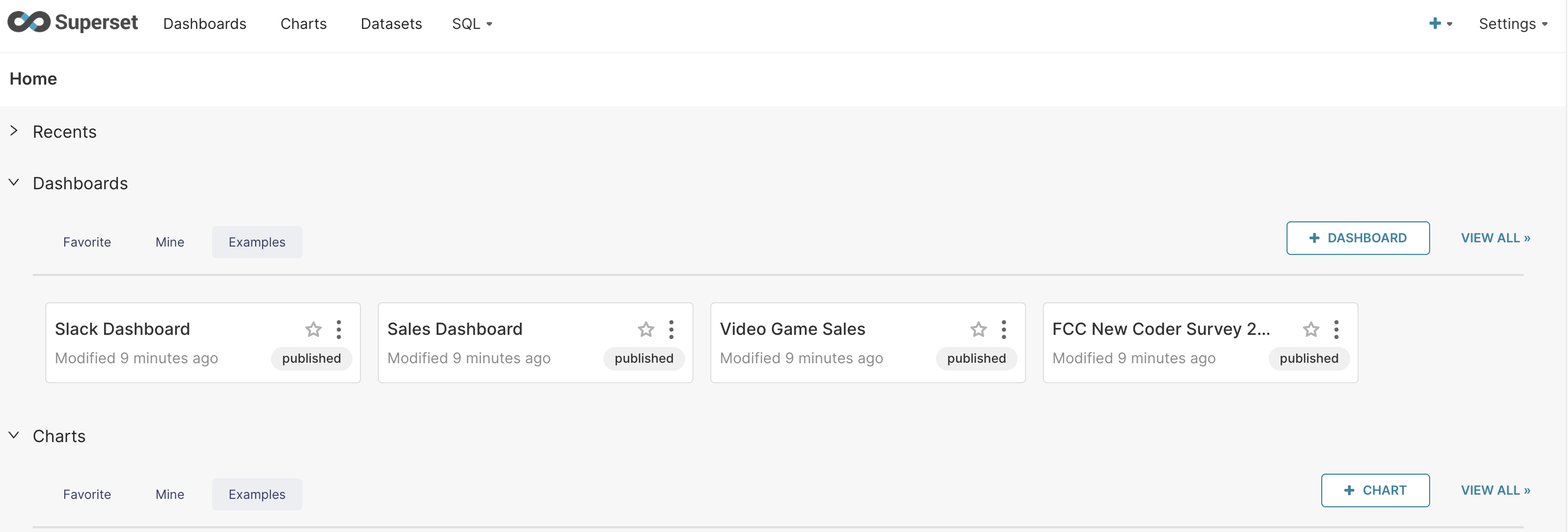 Launch an instance of Apache Superset by following the instructions in Launch Superset through Docker Compose. To start Superset, enterhttp://localhost:8088 into your web browser.