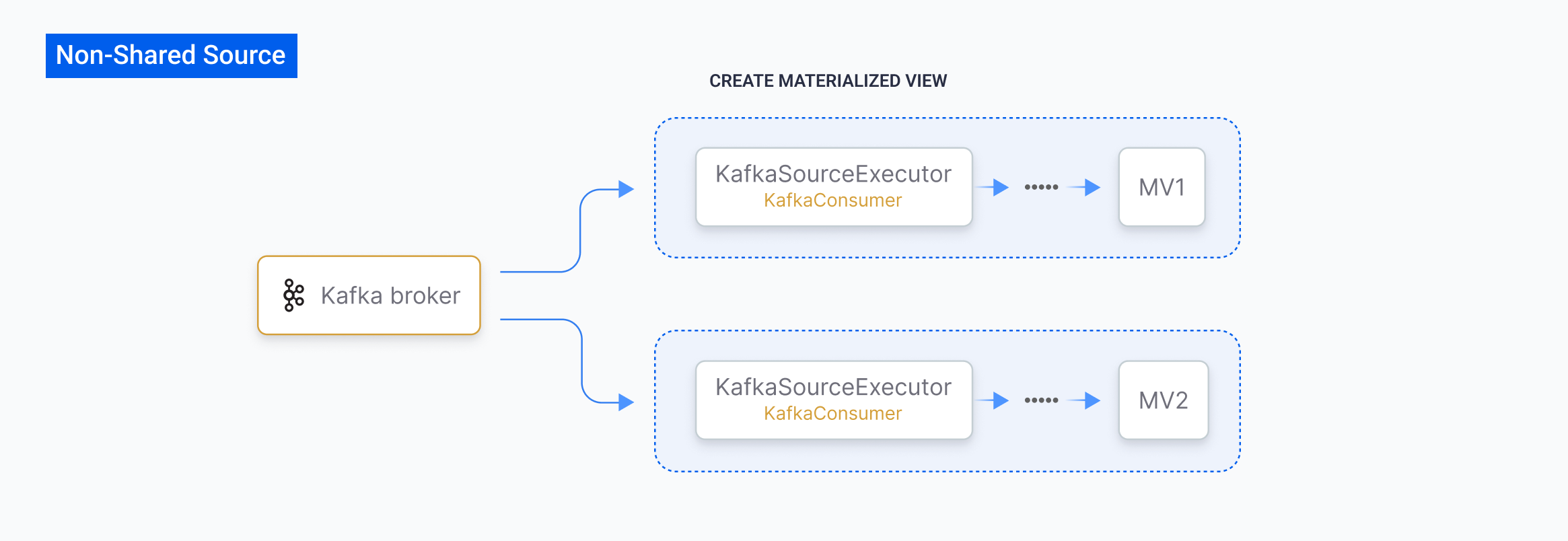 SourceExecutorconsumed Kafka resources independently, adding pressure to both the Kafka broker and RisingWave. - Independent